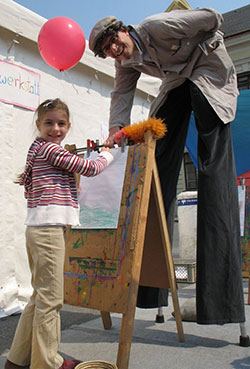 2 Heurigentische für die AIR WALK Stelzen, 1 Tisch für die Jonglierstation, 8 Heurigentische oder 2 Bäume zum Fixieren der Halteseile für die Einradstation, Hilfe beim Zeltaufstellen wenn nur 1 oder 2 ZirkuspädagogInnen gebucht wurden.